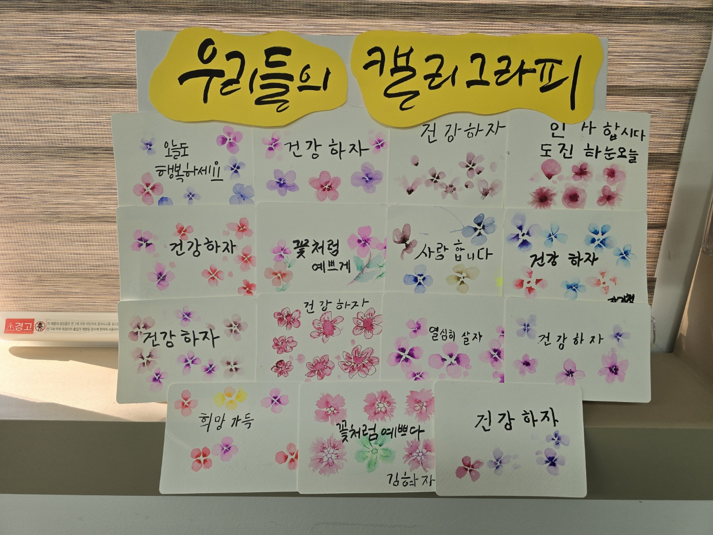 처음엔 붓펜 잡는 것도 낯설어하셨지만, 시간이 지날수록 어르신들의 눈빛은 진지함과 열정으로 가득 찼습니다.