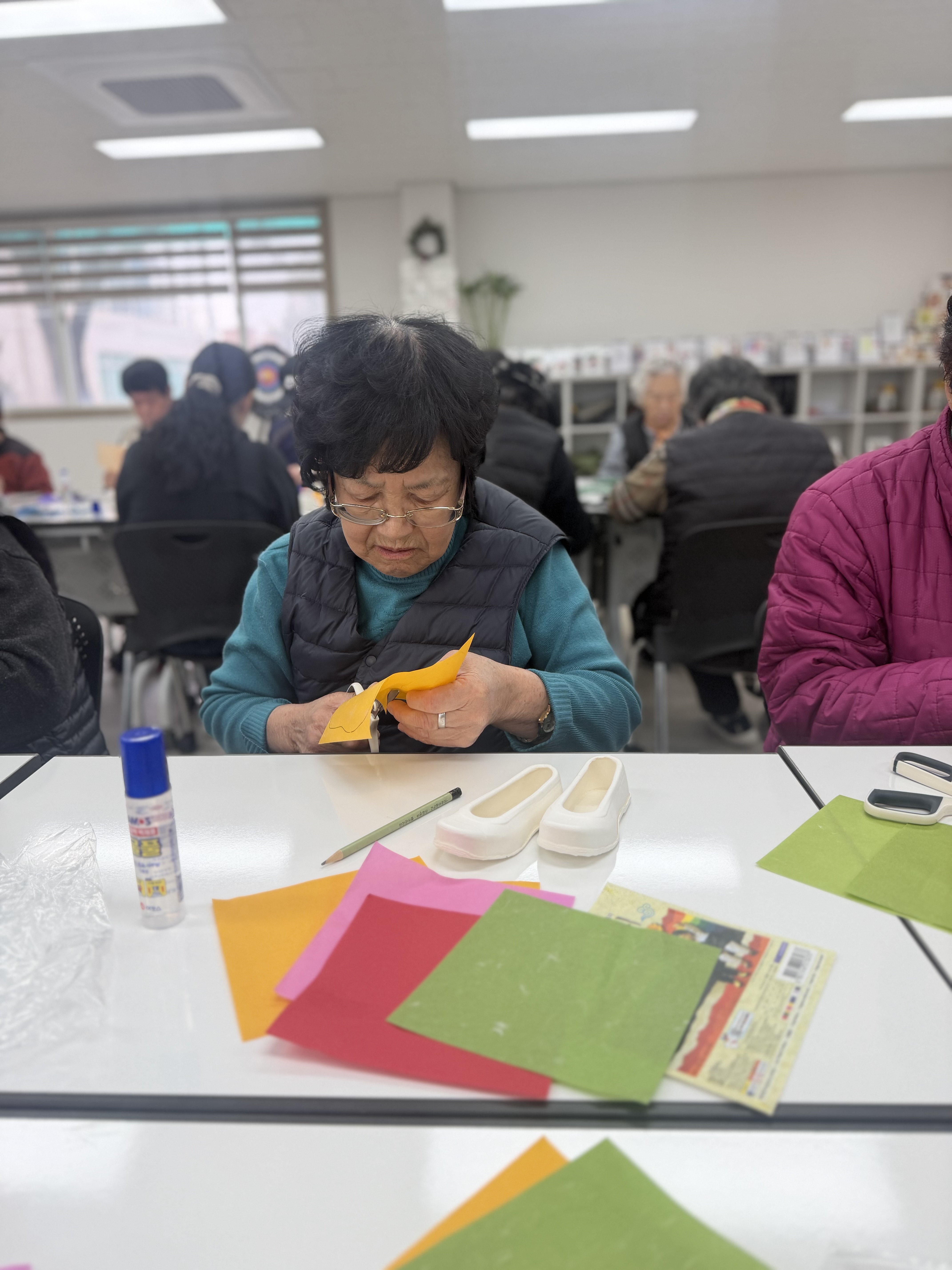 어르신들과 함께 알록달록 예쁜 전통 꽃신을 직접 만들어 보았습니다.