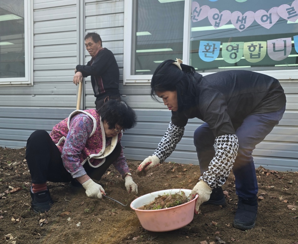 여린 뿌리가 잘 내릴 수 있게 크고 작은 돌들까지 정성껏 골라내며 정성스러운 기초 작업을 마쳤습니다.