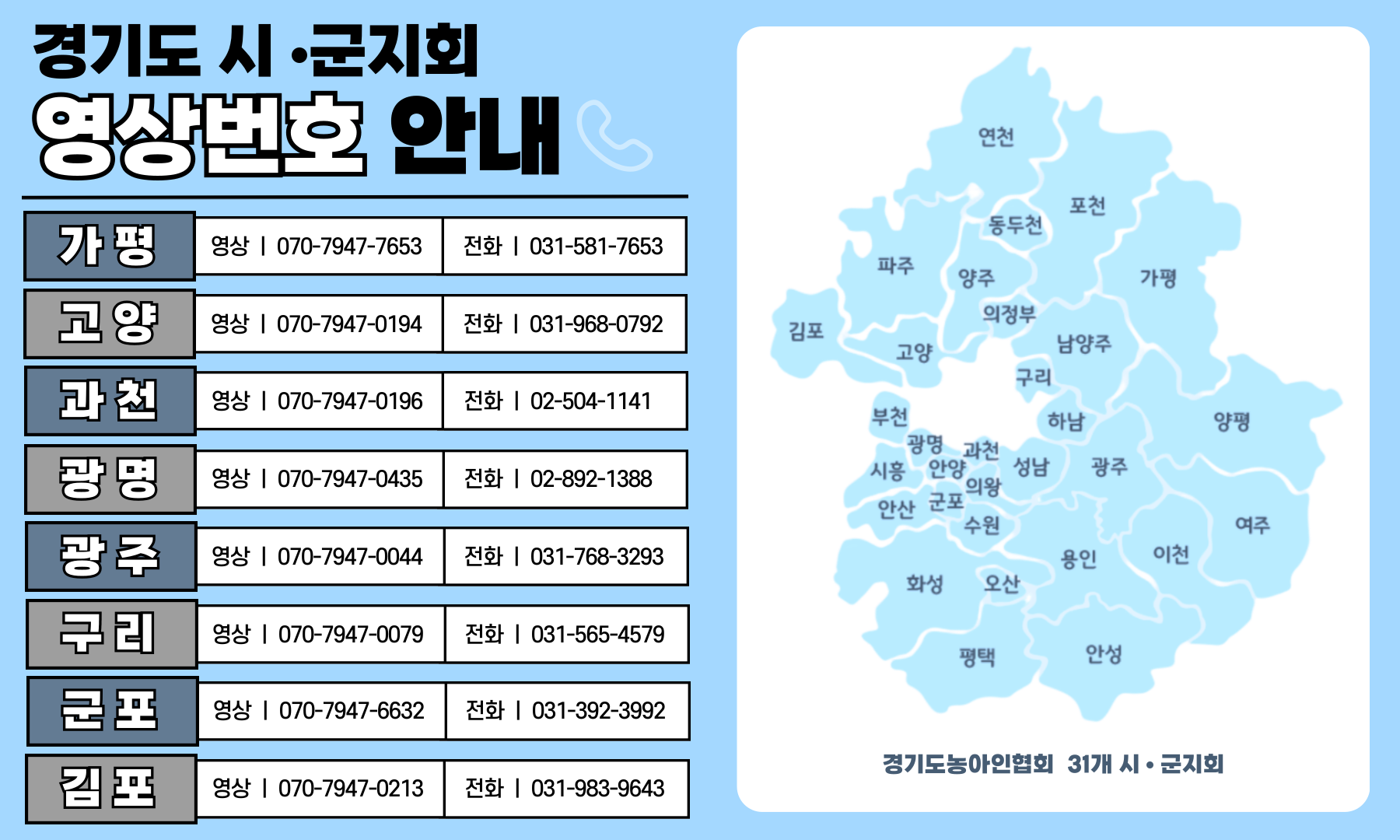 경기도 31개 시·군지회 영상번호 안내